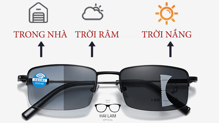 Nhờ vậy người dùng không cần thay đổi giữa kính lão và kính râm khi di chuyển giữa các môi trường ánh sáng khác nhau.